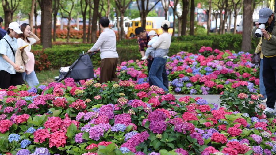 当天的前滩太古里作为开幕式现场,人头攒动,不少市民从钱家滩弄的游览起点出发,一路向黄浦江畔的公园花海走去,每一个景点都要停下打卡。太古里的停车区域从上午开始就排起长队。记者了解到,本次花卉节浦东分会场活动从4月18日持续至5月31日,覆盖整个春季黄金赏花期,市民可以错峰出行。